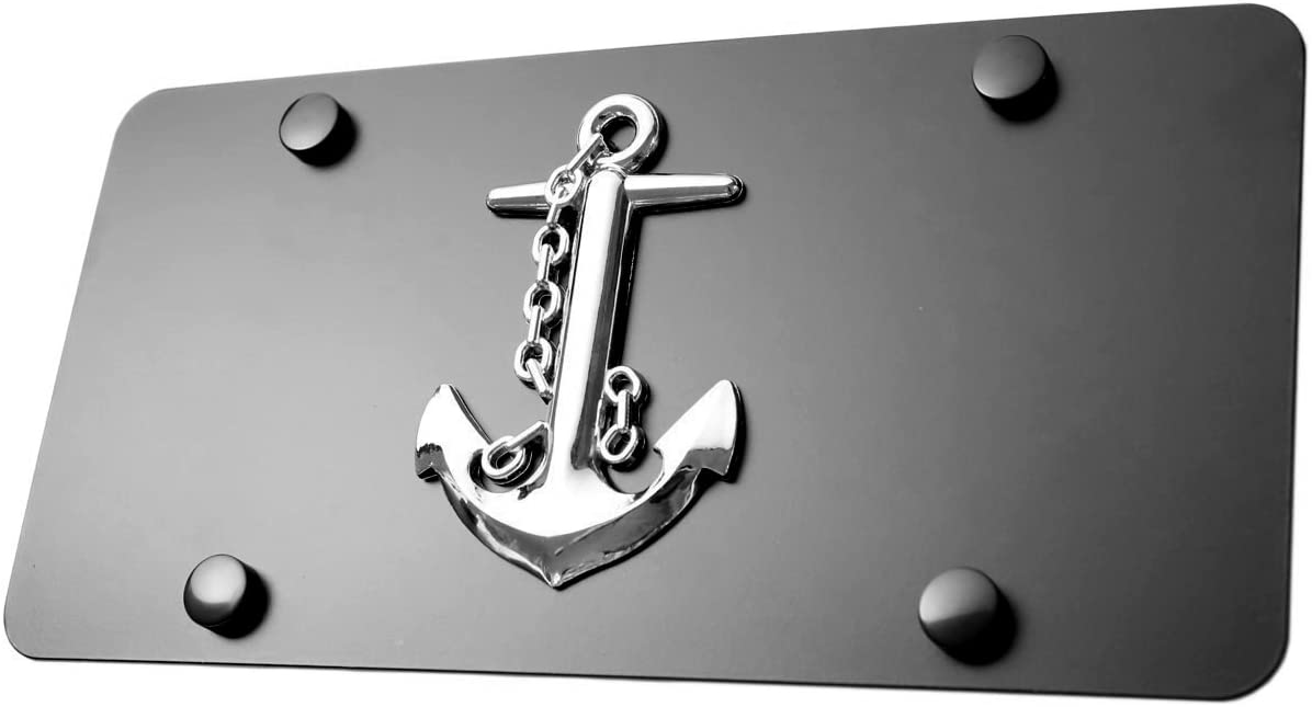 - Navy Ship Anchor 3d Chrome Emblem on Black Stainless Steel License Plate.